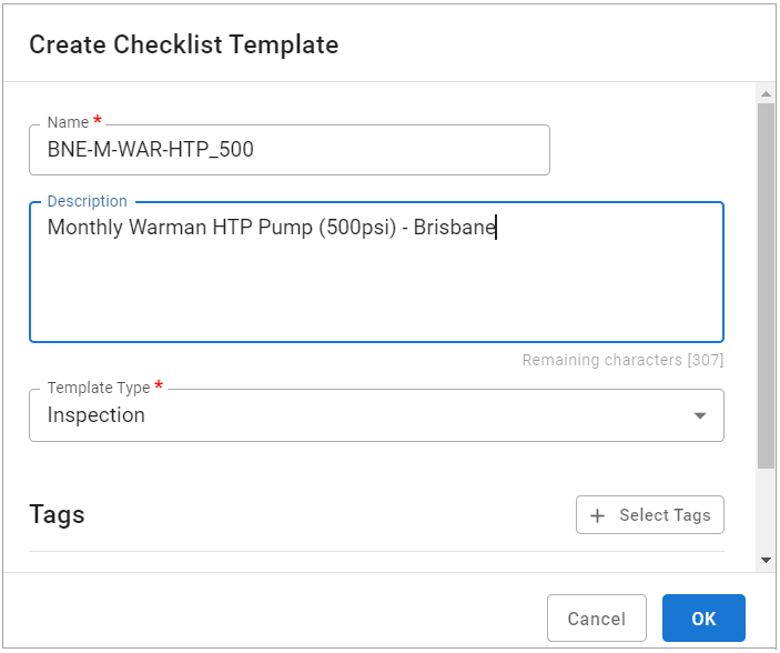 There is no right or wrong way to name Templates. An organisation should do some research to decide what is right for your digital implementation. This will require some analysis of Inspections, Standard Jobs and work processes in your general day-to-day operations.