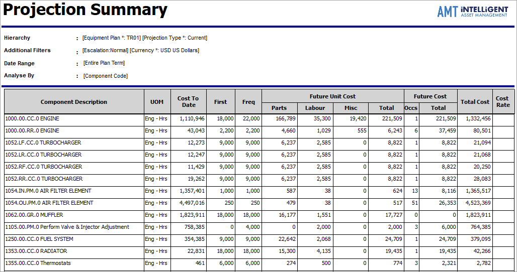 El resultado del proceso es una proyección de los costos de todo el ciclo de vida del activo. A continuación se muestra un ejemplo.