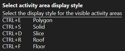 | 5 | Fill visibility | Toggle the visibility of activity area faces. |