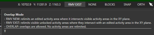 Overlaps - when drawing activity areas there are options available on how to treat the overlap between activity areas. The options also apply to activities converted from imported shapes (grade control, schedule guidance, feature layers).