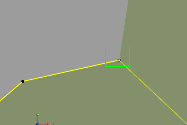 Shared Vertices between activity areas move together when dragged. Vertices will be shared when they have the same X,Y coordinates and mining level. Shared vertices (black with white centre) have a different style than non-shared vertices (black).