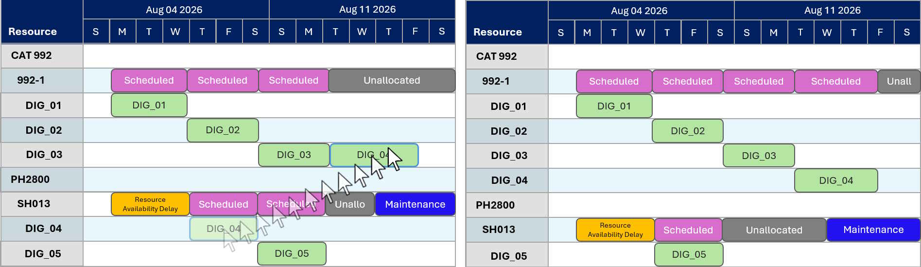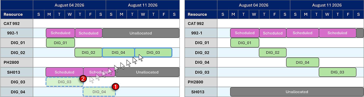 Before and after dragging and reallocating DIG_04 to another resource