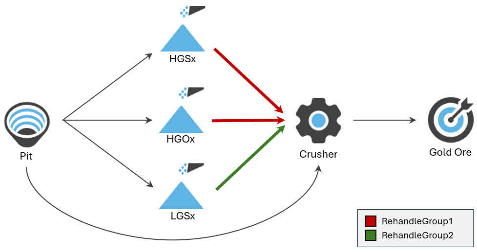 | Group1 | HGSx Stockpile → Crusher HGOx Stockpile → Crusher |