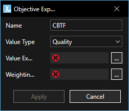 An Objective can be based on one or more numeric Quality fields (Weight Average aggregation type), Quantity fields (Sum aggregation type) or based on an Expression.