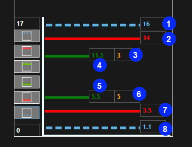 For quality and quantity objectives you define the objective limits in the control as shown below by entering values in the boxes at the end of the limit line. For soft limits, the associated penalty value (if the principal field value falls outside the limit) is set in the box to the right of the limit value. You can click and drag the limit lines to change the limit value.