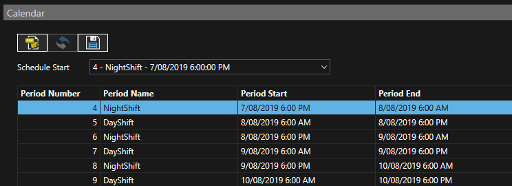 The schedule start date can be adjusted by selecting the start period from the drop-down list. The image below shows period 3 selected as the new schedule start period. Changing the schedule start does not affect any of the proceeding periods, and preceding periods are greyed out. When the change is saved, the greyed out periods are removed and the new Start period is assigned period 1.