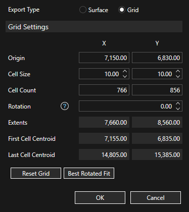 | Grid Settings | Origin | The south-west corner of the export grid (cell edge). |