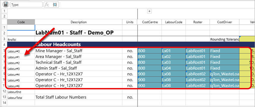 The next screenshot shows an example of using the expandable rows within a spreadsheet, including the row index that is automatically appended to the new code.