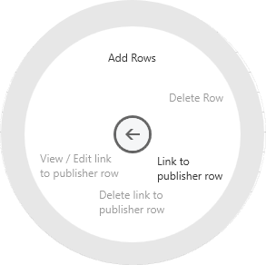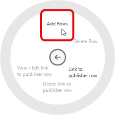| Delete link to publisher row | Removes the link to the Publisher row, meaning the current expandable row will return to a manual add and delete state. |